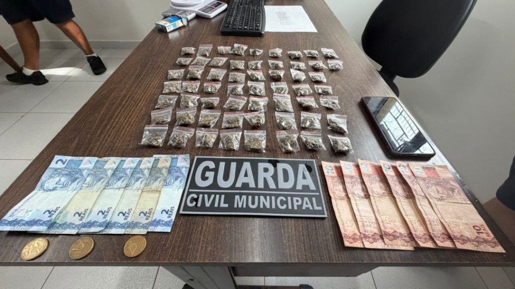 Na sequência, a equipe verificou o material dispensado próximo à lixeira e encontrou várias porções da mesma substância, já separadas e prontas para venda, somando cerca de 102 gramas, segundo o registro oficial.