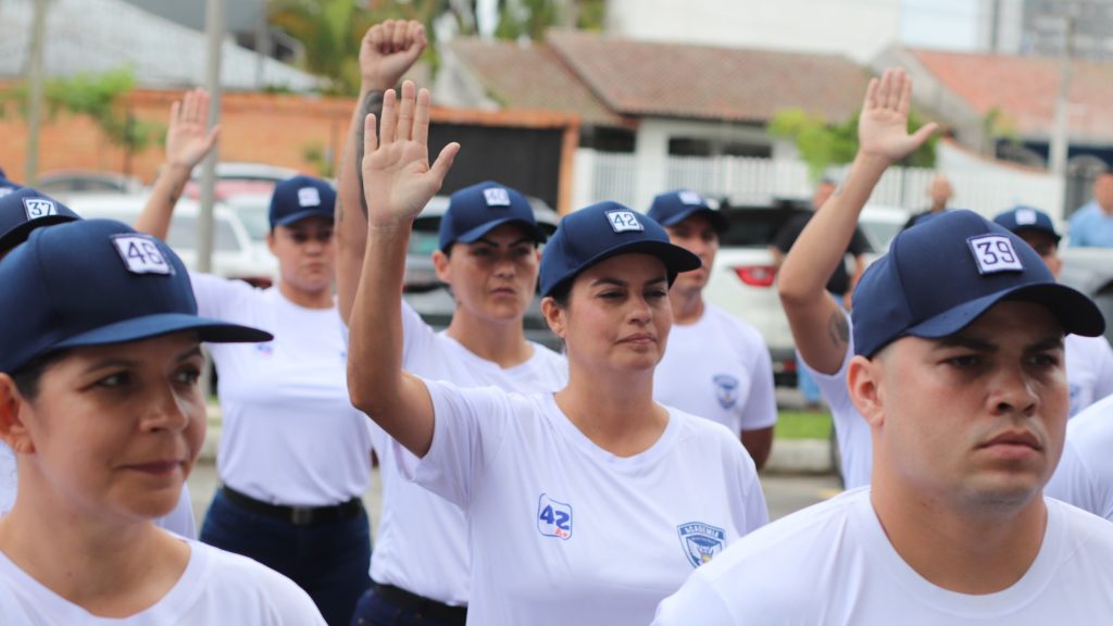 Desde o começo do curso, os participantes seguem a matriz curricular da Secretaria Nacional de Segurança Pública (Senasp), com disciplinas como Código de Conduta, Ética e Cidadania, Direitos Humanos, Política de Segurança Pública e Preservação de Local de Crime. A formação combina conteúdo teórico e práticas de campo, mantendo foco em ética, legalidade e compromisso com a proteção dos moradores.
